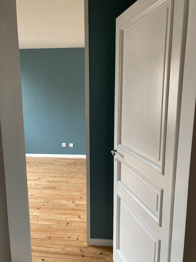 La préparation inclut également un lessivage des murs pour éliminer les salissures et garantir une meilleure adhérence de la peinture. Selon le type de mur et l’exposition de la pièce, nous choisissons la peinture acrylique ou glycéro, en teinte mate, satinée ou brillante. Les peintures que nous utilisons, toutes sélectionnées pour leur haute résistance et leur excellent pouvoir couvrant, sont appliquées soigneusement au rouleau ou au pinceau pour un fini impeccable.